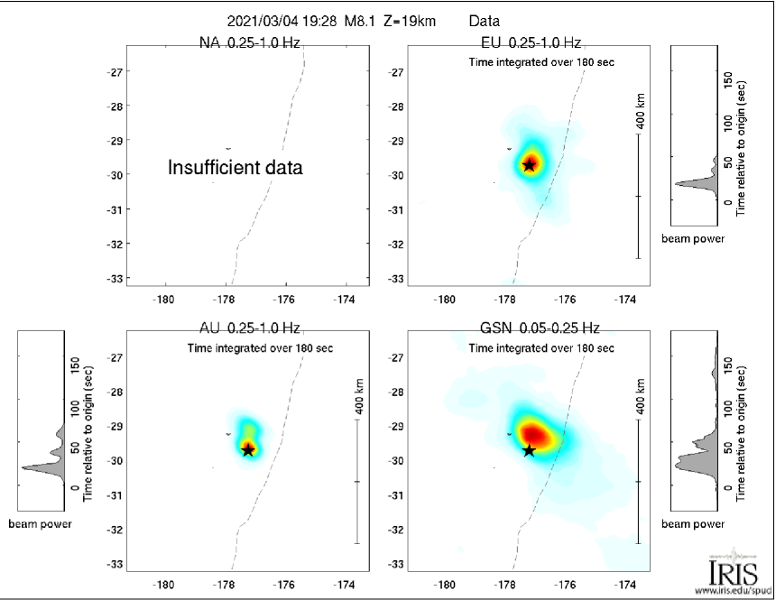 Back Projections For Mww 8 1 Kermadec Islands New Zealand